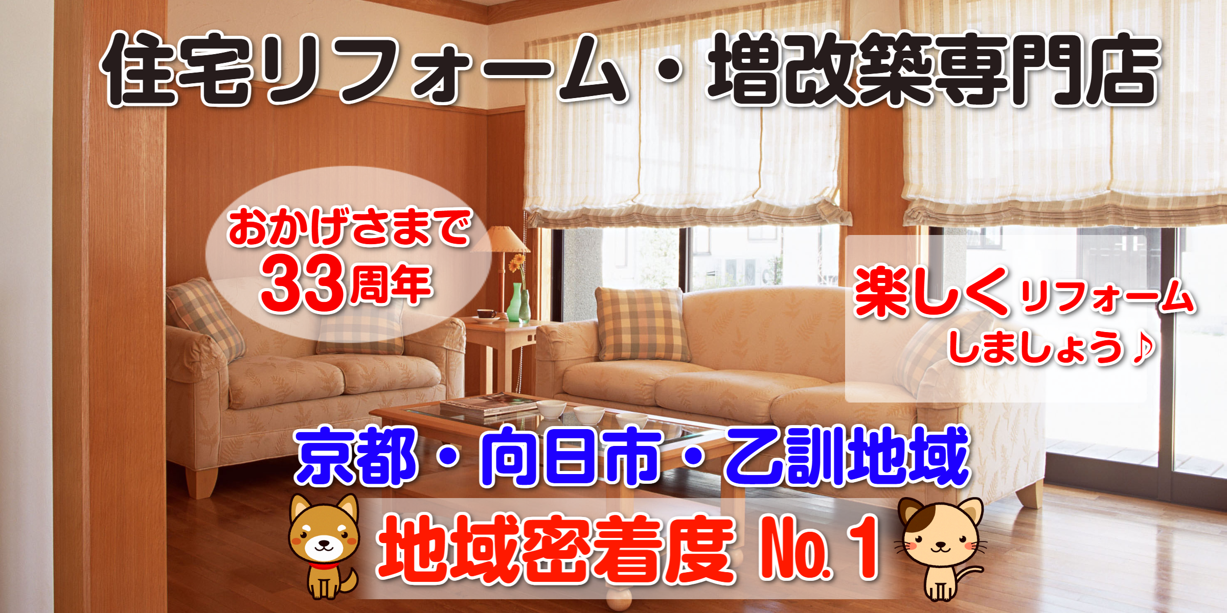 ホームページをご覧いただき誠にありがとうございます。当社は建築職人直営の工事店として創業33年を通過しました。これまでのご信頼に厚くお礼申し上げます。