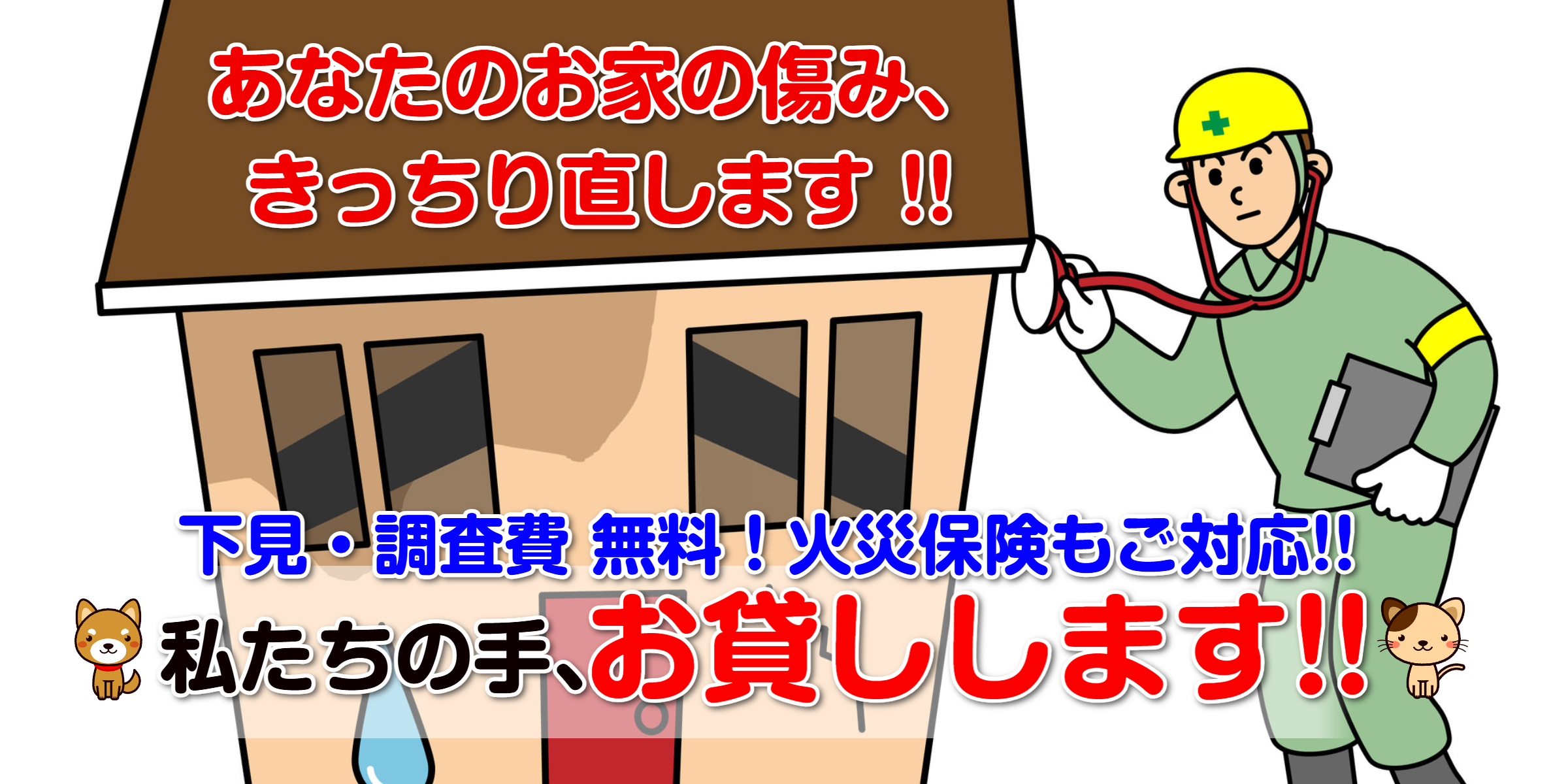 | 2026年 1月 16日 | 《お知らせ》ご存じですか…? ☆家の火災保険は火事以外の補償もあり! ◇過去のご相談事例◇ 台風で雨トイが壊れた被害… 屋根瓦や波板が飛散した被害… 瓦が破損して雨漏り被害… 水道破損であちこち被害… 水漏れで階下が水浸し被害… ☆自己負担無しで修理できるかも!! いま加入の保険内容をご確認いただき 思い当たる場合はご依頼ください すぐに調査に参ります ※ご契約内容によって適用除外の場合は ご容赦願います ➡お問い合わせ&ご相談はこちらから |